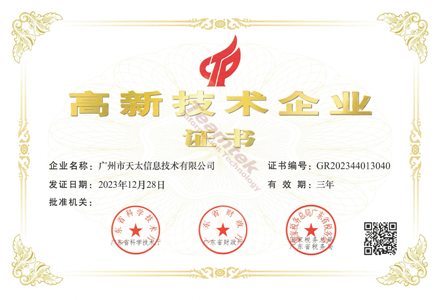 高新技术企业证书