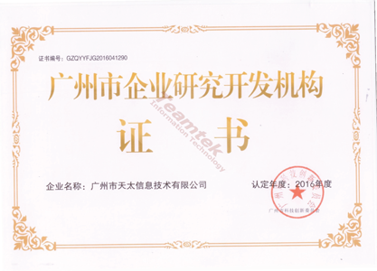 广州市企业研究开发机构证书