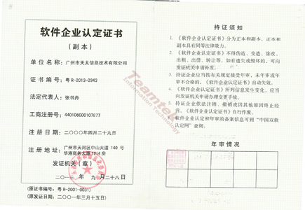 软件企业认定证书