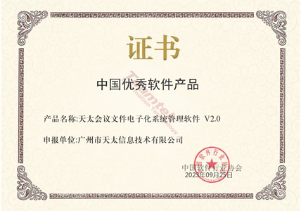 中国优秀软件产品(天太会议文件电子化系统管理软件V2.0)